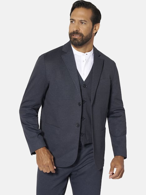 JAN VANDERSTORM is uw expert voor herenmode in grote maten. Het EMPSON jersey jack van JAN VANDERSTORM is de perfecte keuze voor mannen die graag comfortabel willen zijn en er goed uit willen zien. Het klassieke jersey jack heeft een reverskraag en knoopsluiting. Twee opgestikte zakken en een borstzak zorgen voor een chique look en bieden je opbergruimte. De mouwen zijn gevoerd en hebben een kleine knoopsluiting, wat zorgt voor veel comfort. Je kunt je outfits gemakkelijk upgraden met dit jack in grote maten - het staat geweldig bij jeans en broeken. EMPSON jersey jack - je nieuwe partner voor stijlvolle outfits. Materiaal 63% polyester, 33% viscose, 4% elastaan; materiaal mouwvoering 100% polyester. Professionele reiniging.