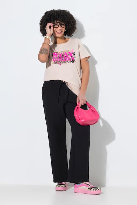 Mousseline broek, wijde rechte pijp, elastische tailleband