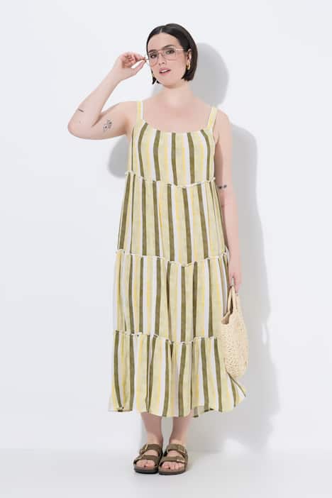 Midi-jurk met schouderbandjes, strepen, A-lijn, mouwloos