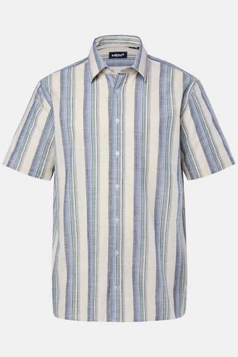 Men+ gestreept overhemd, linnenlook, korte mouwen, kentkraag, Comfort Fit, tot 8XL