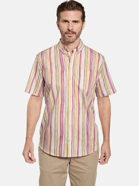 BABISTA inspireert al 30 jaar modebewuste mannen met gevoel voor kwaliteit. Het overhemd met korte mouwen BENZETTI van BABISTA laat u op elk moment van de dag stralen. De klassieke verticale strepen in levendige kleuren onderstrepen uw stijlvolle look. Het overhemd heeft een modieuze buttondownkraag en een handige borstzak – ideaal om uw zonnebril en zonnebrandcrème binnen handbereik te hebben. Met BENZETTI straalt u stijl en vrolijkheid uit, ook op grijze, bewolkte dagen. Dit overhemd is uw modieuze lichtpuntje voor iedere dag. Materiaal 100% katoen. Geschikt voor de wasmachine.