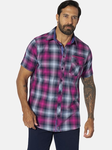 JAN VANDERSTORM is uw expert voor herenmode in grote maten. Ontdek het modieuze HILSING overhemd met korte mouwen van JAN VANDERSTORM - het perfecte overhemd voor echte kerels die waarde hechten aan nonchalance en stijl. Het Scandinavisch geïnspireerde ontwerp met Kent-kraag en ruitpatroon maakt dit overhemd een echte aanwinst voor je garderobe. Er zit een opgestikte zak met klep en knoop links op de borst. Boven de borstzak zit borduursel. Er zit ook een coole badge op de linkermouw. Met HILSING kun je echt aan de slag.