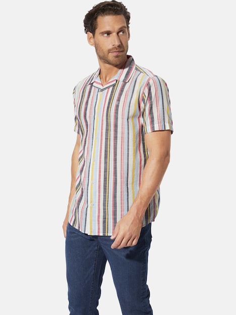 BABISTA inspireert al 30 jaar modebewuste mannen met gevoel voor kwaliteit. Het ULRON overhemd met korte mouwen van BABISTA maakt indruk met zijn stijlvolle ontwerp dat geen enkele modieuze man zou willen missen. Dit geraffineerde overhemd straalt moderne elegantie uit met zijn levendige patroon van verticale strepen. De zomerse Hawaiiaanse kraag geeft het overhemd met korte mouwen voor heren een tijdloze touch, terwijl de centrale knoopsluiting altijd een casual look belooft. Het fijne borduursel op de borst voegt een speciaal tintje toe. Bij een barbecue of aan de strandbar, dit overhemd is altijd een goede keuze. Materiaal 100% katoen. Machinewasbaar.