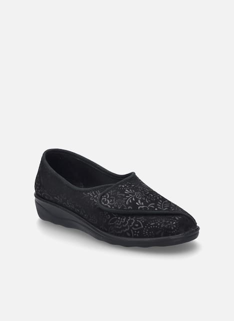 Ontdek de moderne JOSEF SEIBEL Nice 104, een zwart damesslipper die comfort en stijl moeiteloos combineert. Deze slipper is ontworpen voor ultiem gemak en is ideaal voor dagelijks gebruik. Met een praktische klittenbandsluiting en vervaardigd volgens de Strobel-methode, biedt hij duurzaamheid en flexibiliteit. De schoen heeft een comfortabele H-wijdte en is voorzien van een PU-zool voor een veilige grip. Zowel het bovenmateriaal als het binnenmateriaal en voetbed zijn gemaakt van zacht textiel, wat zorgt voor een aangenaam draaggevoel. Perfect voor ontspannen momenten thuis.