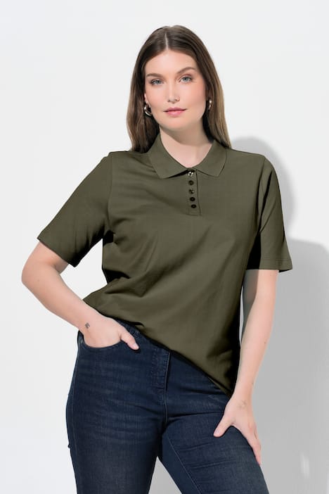 Poloshirt, langere knoopsluiting, polokraag, korte mouwen