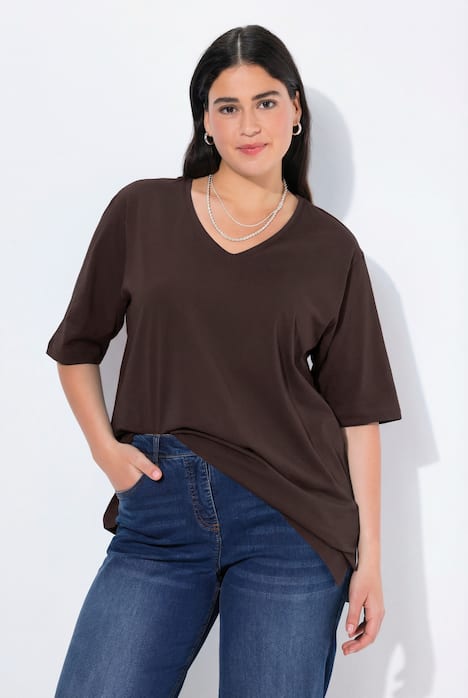 T-shirt met V-hals en korte mouwen. Aan de zijkanten zijn splitten die voor meer bewegingsvrijheid zorgen. Dit basic T-shirt is veelzijdig te combineren en door het zachte katoen bijzonder aangenaam te dragen. Type: relaxed.