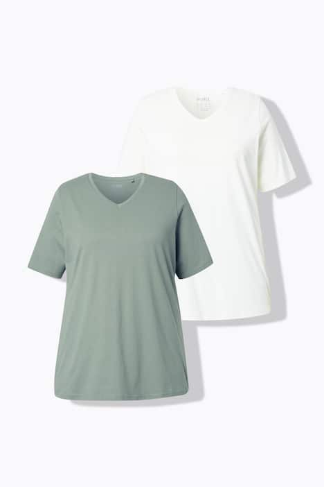 T-shirts, basic, set van 2, V-hals, korte mouwen, biologisch katoen